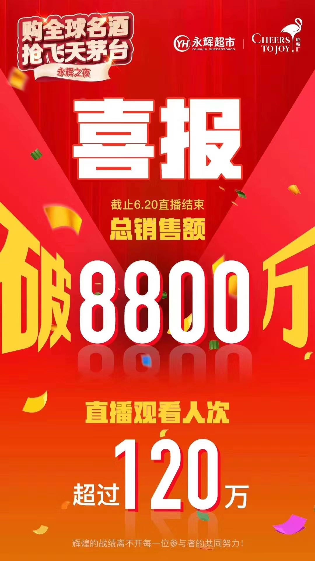在隨之而來的618期間,永輝超市首屆全球名酒節(jié)在永輝生活A(yù)PP、小程序等線上平臺開展,6月20日晚,永輝超市CEO李國攜手茅臺北京公司董事長母小斌親臨直播間,一系列買贈好禮、幸運抽獎、海量啤酒券大放送、葡萄酒梅酒免費贈等活動令網(wǎng)友大呼過癮,3小時直播吸引超120萬網(wǎng)友在線觀看。據(jù)統(tǒng)計,本次永輝超市全球名酒節(jié)期間,永輝酒類商品全渠道銷售額超8800萬元。