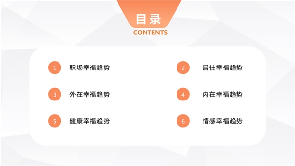 以剛剛過去的2020年“雙11”為例,報(bào)告顯示,為了在工作、家庭和自我三個(gè)層面提升幸福度,中國消費(fèi)者的消費(fèi)行為,呈現(xiàn)出6大新趨勢——職場幸福趨勢、居住幸福趨勢、外在幸福趨勢、內(nèi)在幸福趨勢、健康幸福趨勢、情感幸福趨勢。