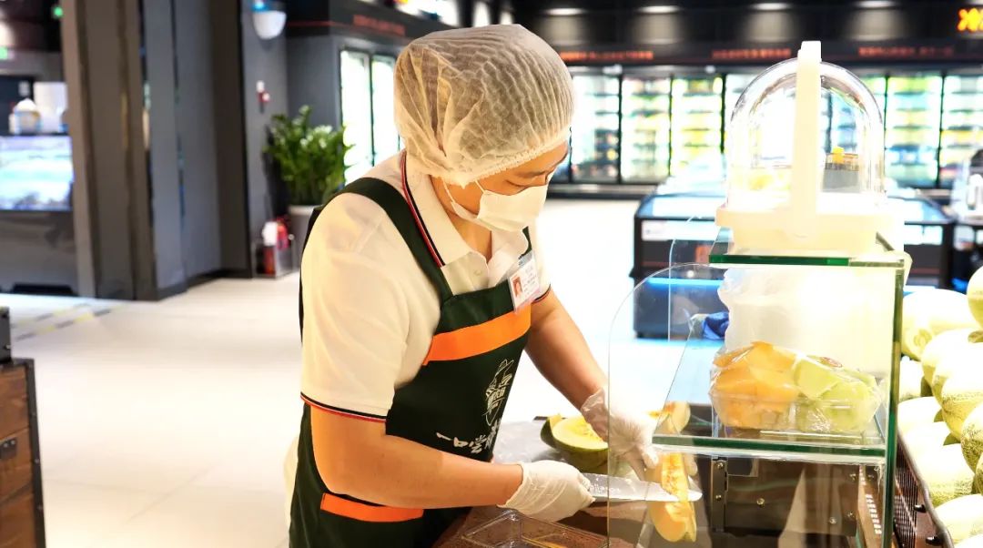 試吃臺(tái)的背后,是一場(chǎng)近乎“強(qiáng)迫癥”的品質(zhì)革命。每天中午和閉店前,員工會(huì)徹底消毒試吃器具,試吃盒內(nèi)不能陳列多種商品避免串味;試吃活動(dòng)需用到電器設(shè)備時(shí),都須提前檢查,操作期間注意用電安全,避免燙傷顧客。當(dāng)顧客接過(guò)一份試吃的水果時(shí),他們或許不知道,每一顆荔枝都經(jīng)過(guò)“掐柄看色”的篩選,只為保留最清甜的果香。