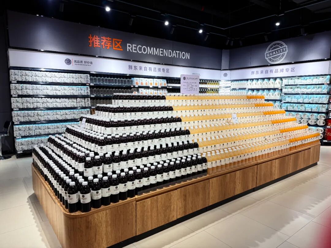 調改后,各店商品力顯著提升,新品引入比例普遍達到45%以上,商品結構已接近胖東來標準的80%。店內均設有醒目的“胖東來自有品牌專區”與“品質永輝”系列矩陣,讓DL果汁、精釀啤酒等網紅商品及永輝高質價比自有品牌產品觸手可及。生鮮板塊強化了精品與體驗屬性,智利車厘子、紅顏草莓、丹東草莓等冬季時令尖貨依托永輝直采供應鏈新鮮直達。服務層面,拓寬的通道、降低的貨架、配備血壓儀等設施的休息區、以及肉禽海鮮免費加工等細節,無不體現著以人為本的服務溫度。