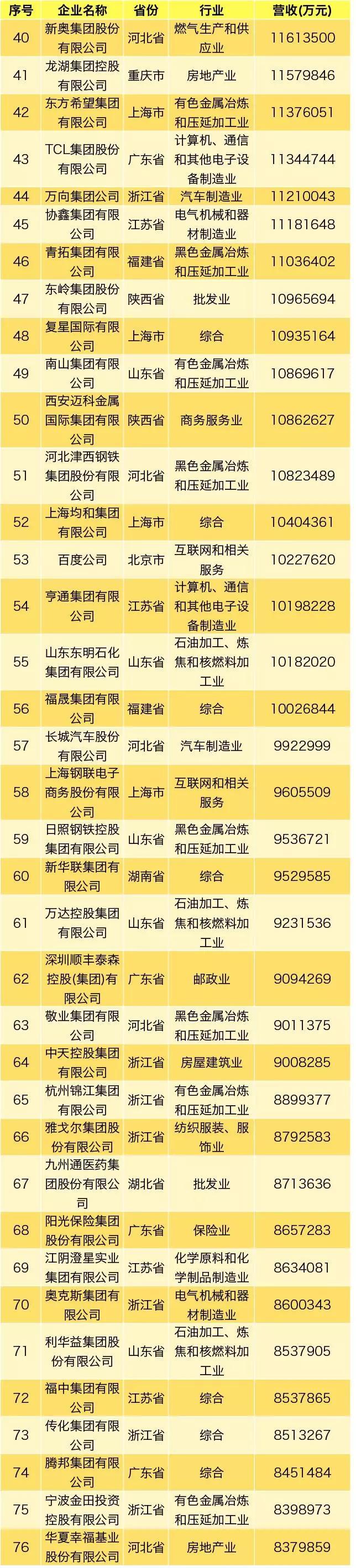 此外,今年有20家民企500強(qiáng)入圍世界500強(qiáng),比上年增加3家。 而與去年相比,有 85 家 企業(yè)新進(jìn)入榜單。