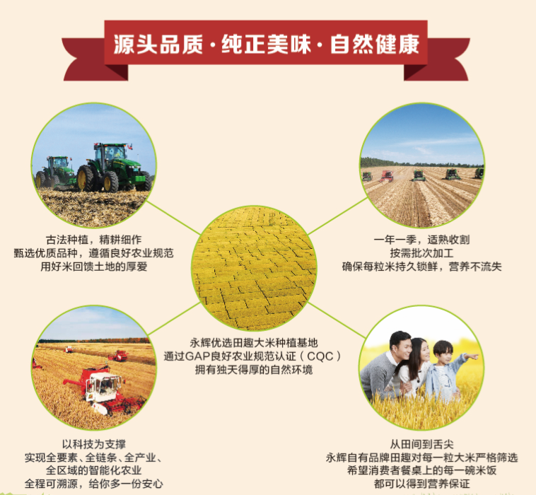 為了保障大米的高品質(zhì),田趣圍繞大米消費升級,推動了品種定制、基地定制、生產(chǎn)定制的供應(yīng)鏈升級建設(shè)工作。從東北糧倉到魚米江南,精心挑選南北兩大黃金水稻帶,田趣深入產(chǎn)地源頭開發(fā),優(yōu)中選優(yōu),通過真正的訂單農(nóng)業(yè)模式實現(xiàn)了永輝優(yōu)選田趣大米品質(zhì)的飛躍。