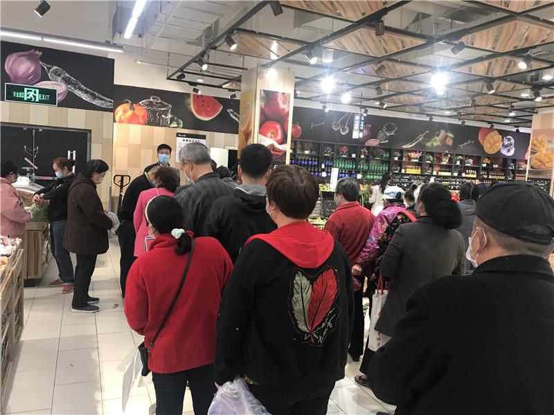 (市民在有序排隊(duì)購買豌豆)