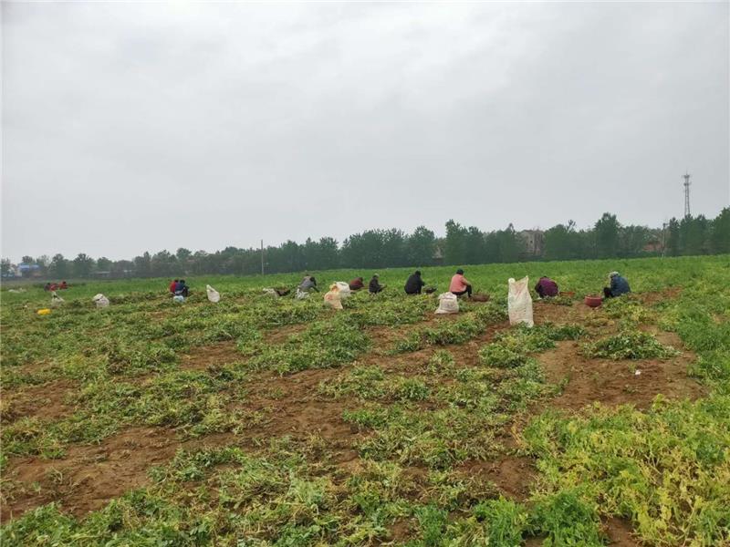 (村民在田間采摘新鮮的豌豆)
