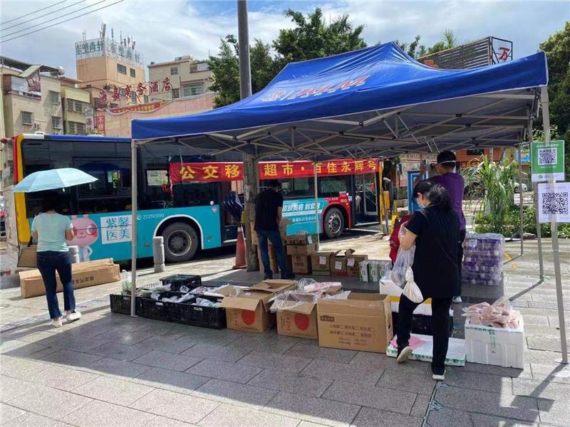 6月初,廣州市新型冠狀病毒肺炎疫情防控指揮部將荔灣區(qū)“南片”芳村片區(qū)調(diào)整為封控管理區(qū)域。為應(yīng)對(duì)封控管理區(qū)域農(nóng)貿(mào)市場(chǎng)關(guān)停的影響,保障居民基本生活物資需求,市、區(qū)商務(wù)部門迅速反應(yīng),開展 “公交移動(dòng)超市”行動(dòng),安排多輛公交車每天分別進(jìn)駐各重點(diǎn)街區(qū)為當(dāng)?shù)鼐用裉峁┵I菜服務(wù)。超市每天的營(yíng)業(yè)時(shí)間不低于6小時(shí),盡可能為居民的購(gòu)物提供便利。
