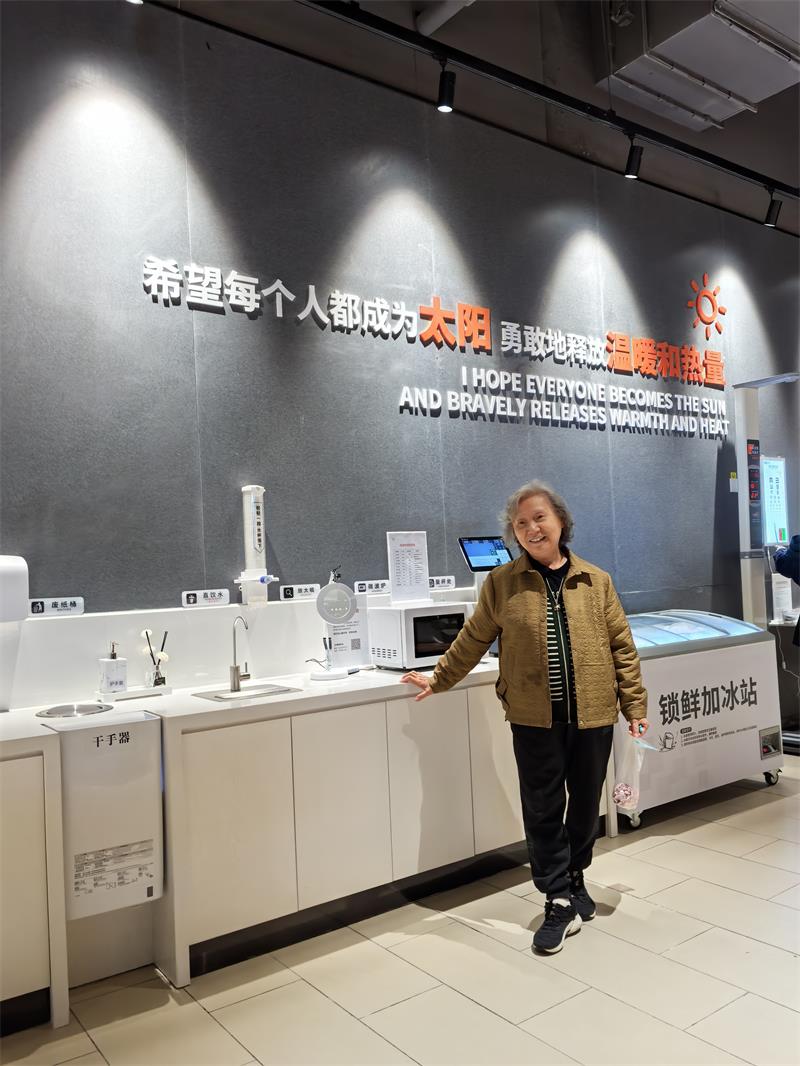 門店外,為排隊(duì)的客人們準(zhǔn)備遮陽棚、礦泉水和小板凳,幫離店的銀發(fā)族拎重物。門店里,便民區(qū)的血壓測量、視力測試、直飲水、洗手臺(tái)、放大鏡,都是備受顧客喜愛的新服務(wù)。工作人員甚至?xí)贸咦訙y算寵物尿墊的大小,來做好寵物的照料。