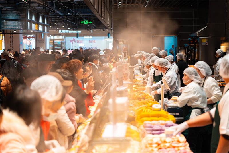 11月28日,合肥永輝超市方圓薈店經過“學習胖東來”自主調改后正式開門迎客,門店經營面積共7200平方米,是永輝超市在安徽面積最大的賣場,也是在合肥的第三家調改店,共規劃了15400多支單品,整體的上新率達到65.4%左右,商品結構達到胖東來商品結構的80%,烘焙、熟食等鮮食比例進一步放大,從原先的5%增至20%-30%30日,方圓薈店單日銷售額突破220萬。